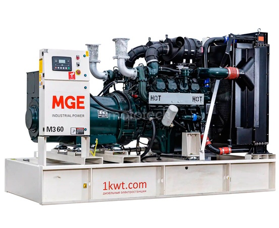 Трехфазный дизельный генератор MGE, модель MGEp400DN на базе промышленного двигателя Hyundai-Doosan (Корея). Электростанция предназначена для стационарного размещения и может устанавливаться на улице (кожух или контейнер). На данную электростанцию установлена панель управления SmartGen SK-6120.MGE - российский производитель и поставщик энергетических решений, который создаёт и реализует дизельные генераторные установки (ДГУ) промышленного назначения. В основе продукции - проверенные двигатели от ведущих мировых производителей, что гарантирует сочетание надёжности и высокой производительности. Хотя бренд MGE — российский, производство электростанций локализовано в Китае.