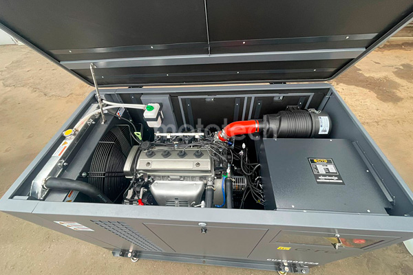 Бытовая генераторная установка работает на природном газе метан, пропан-бутан и бензин. Отличается низким уровнем шума и малым объемом выброса, безопасен для окружающей среды.