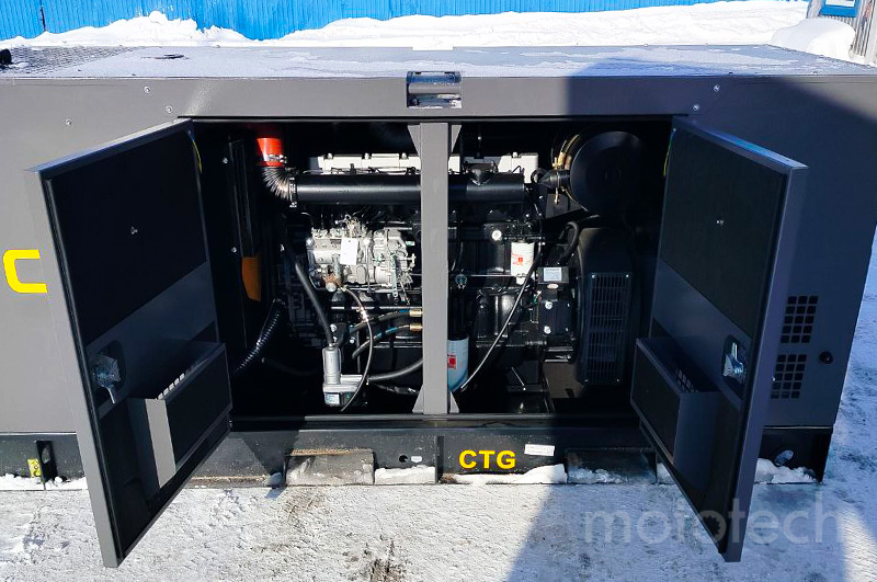 Проанализировав все пожелания заказчика, ему были предложены дизельные электростанции бренда CTG AD-150RES, мощностью 150 кВа, на промышленном моторе Ricardo, суммарная резервная мощность установок составила 300 кВА. Данные дизельные электростанции устанавливаются на улице и для снижения шумовых показателей, станции поставлялись в шумозащитных кожухах. Для надежного и гарантированного запуска станций в зимний период, на них были установлены дополнительные автономные подогреватели охлаждающей жидкости.